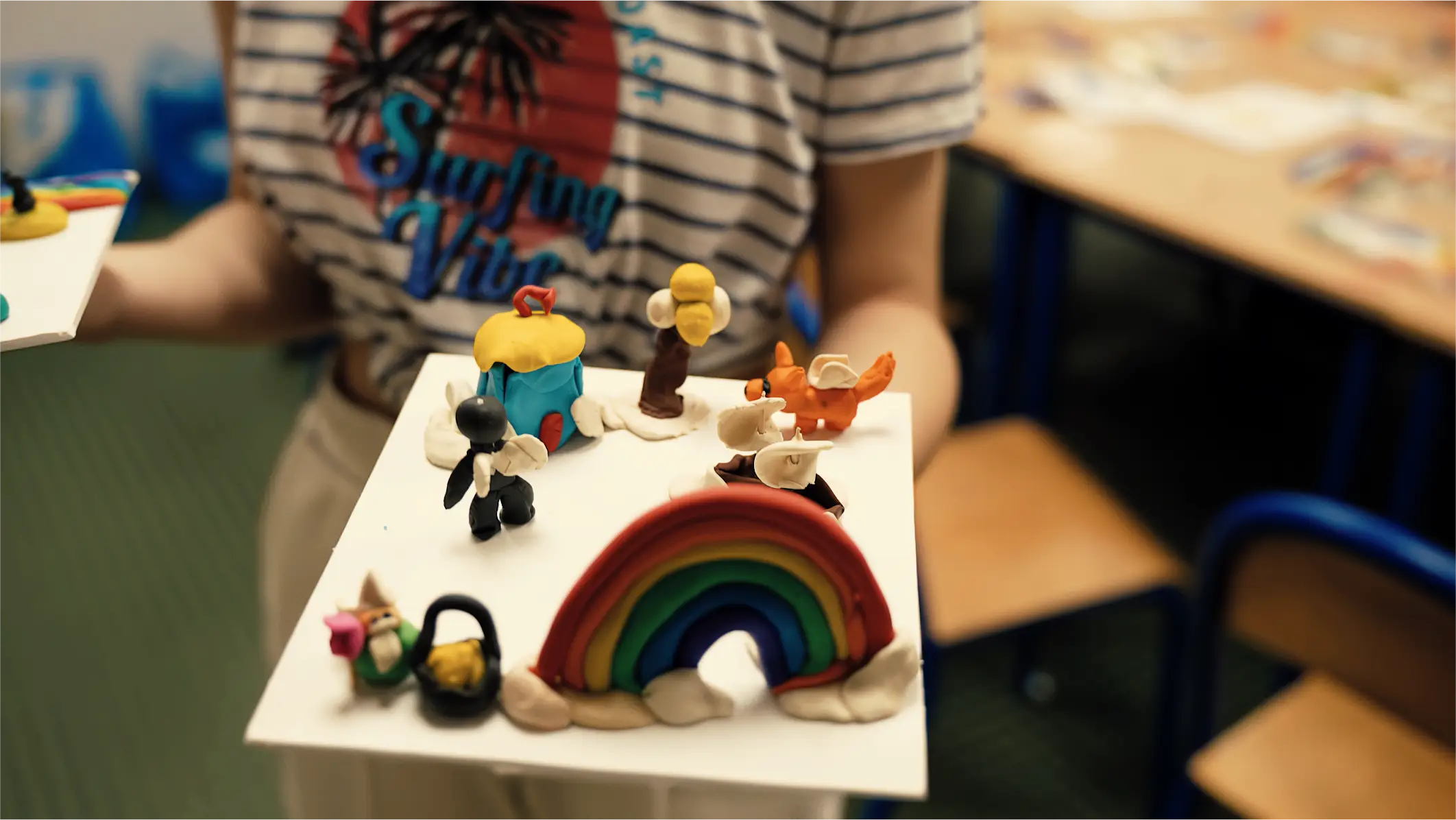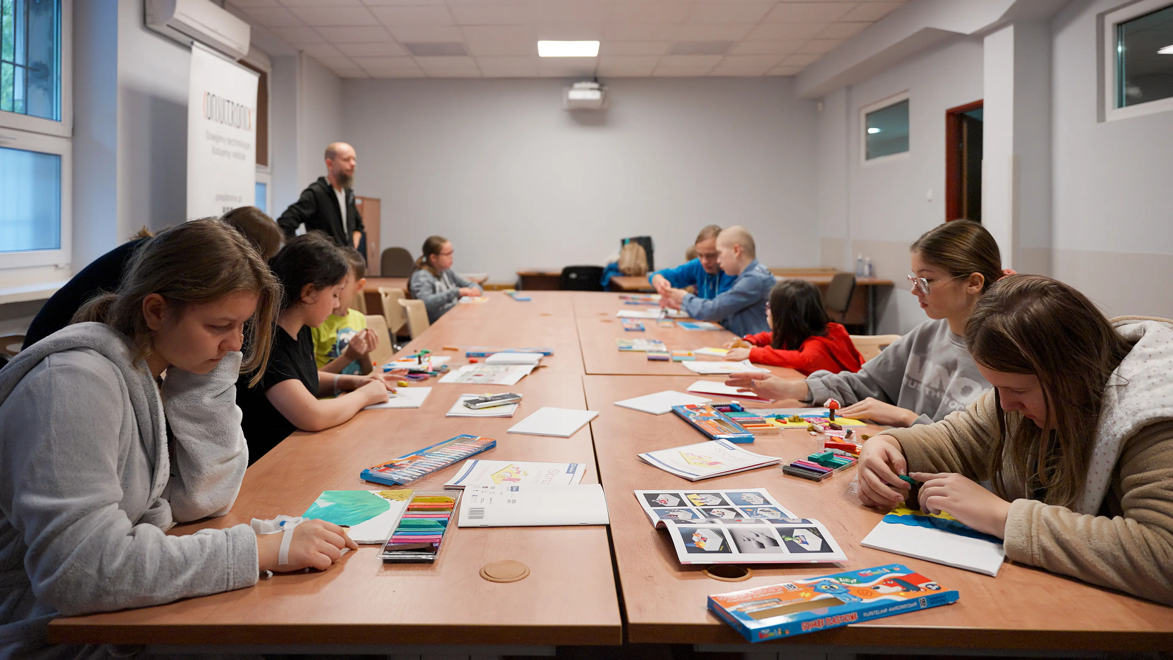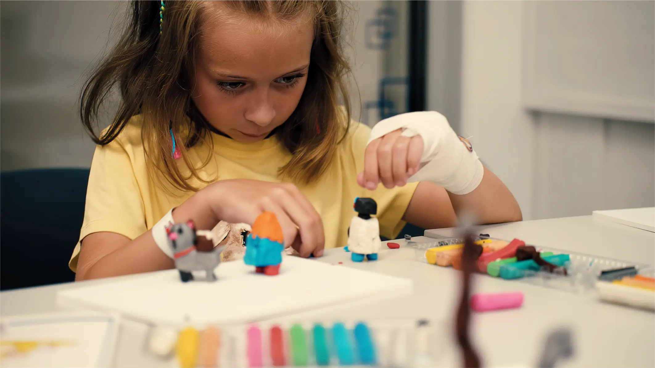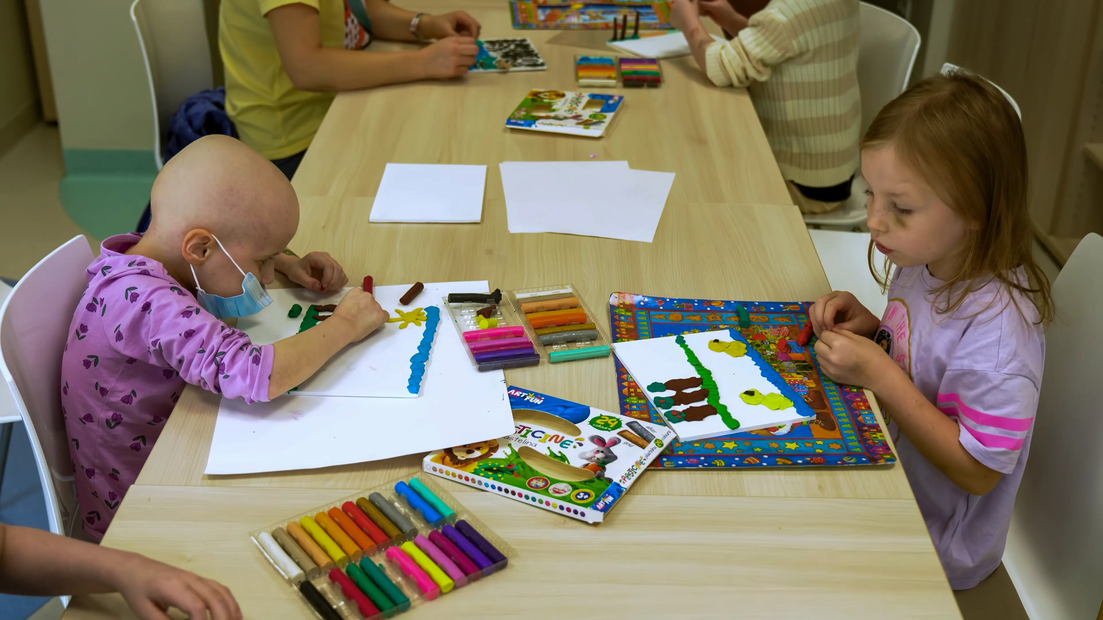 Organizujemy warsztaty artystyczne w szpitalach dziecięcych, gdzie mali pacjenci tworzą prace plastyczne, które następnie podczas wydarzeń branżowych/konferencji medycznych zamieniają się w dzieła malarskie.
